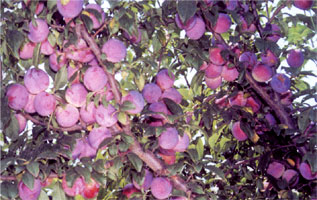 栽培習性:樹勢強旺,枝條分枝角度較大,樹冠趨向開張。幼樹容易分枝,萌芽率高,成枝力強。成齡樹以長中果枝結果為主,短果枝坐果量少,全部坐單果。碧綠紅心李早實豐產性強,一般栽后二年開花,三年結果,平均株產2.6千克;四年豐產,平均株產13.4千克,最高株產16.8千克,每公頃產2.1萬千克。在陜西正常年份,碧綠紅心李3月中旬花芽膨大,4月4日為初花期,盛花期在4月上旬,6月中旬果實開始膨大,6月底7月初果實成熟。落葉期為11月中旬。該品種自花結實率低,需要配植授粉樹,適宜授粉品種為黑琥珀、澳得羅達等。